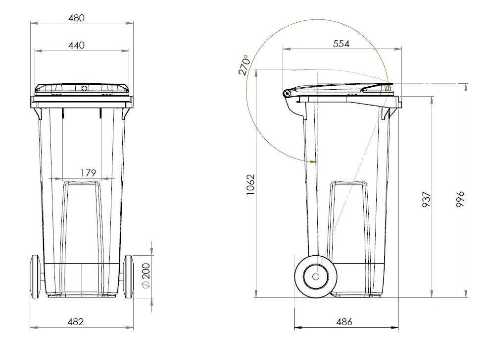 - Complies with BS EN 840 European Standards for waste containers.