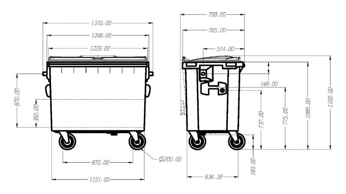 1100 Litre Flat Top Plastic Wheelie Bin