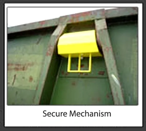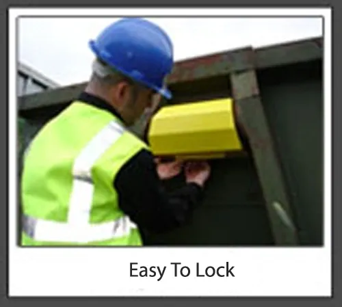 The Ro Ro Lock is designed to provide added security for roll-on / off skips. The Ro Ro Lock is manufactured from steel with a new patented toughened design. The Ro Ro Lock has an integrated locking device, which when in the locked position, provides additional strength via three secure steel bars. The Ro Ro Lock’s internal locking device and bars are protected from tampering through an external steel cover. This ensures the Ro Ro Lock is protected once locked and can only be accessed via the unlocking procedure. Simply inserting a key into the internal lock will release the locking mechanism as easy as securing it. Each cover is made of steel with a high visibility durable powder coating. Units can be manufactured to meet your specifications, please contact us using the details below. Depending upon your requirements, we can provide keyed alike locks.